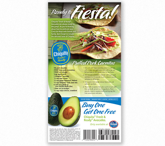 Chiquita contracted us to design a tie-in with their Fresh and Ready Avocados and Kraft Foods Taco Bell Home Originals.