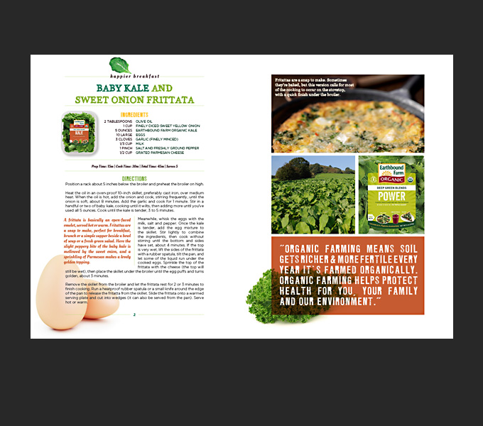 Earthbound Farm Organic All Projects Recipe Book Concepts More Earthbound Farm Projects » Earthbound Farm Organic Recipe Book Concepts Earthbound Farm is committed to producing the purest food possible, all organic. We developed these book concepts to show that these whole foods, found in nature, can be the inspiration behind every meal, and enjoyed every day. Project Details Recipe Book Concepts